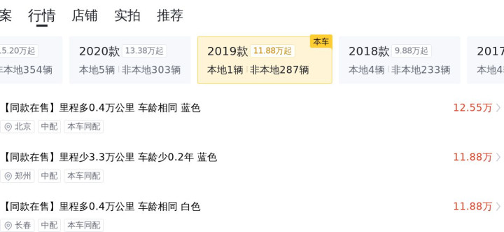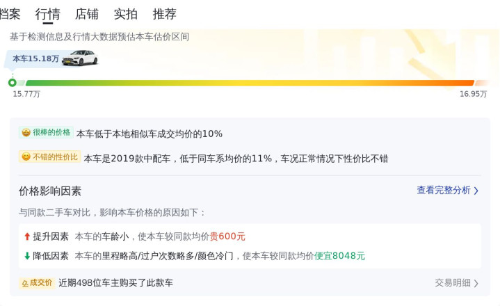 根据大数据预估显示,这款车的二手车行情在16.23万-19.47万之间,当然,具体的落地价格跟车辆的车况有着直接关系。影响本车价格的因素有里程、车龄、过户次数、颜色等,经综合评估以后,该车价格在市场行情价中属于偏低价位。