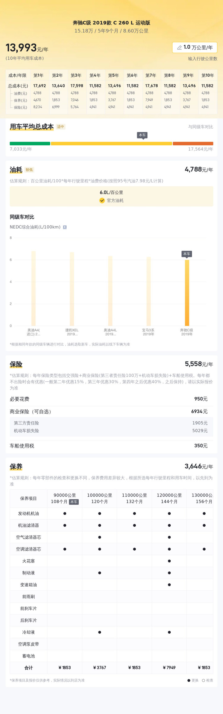 根据估算,这辆车年均综合用车成本大概在每年1.4万元左右。实际费用开销会根据车主的使用习惯、环境等因素有所改变。